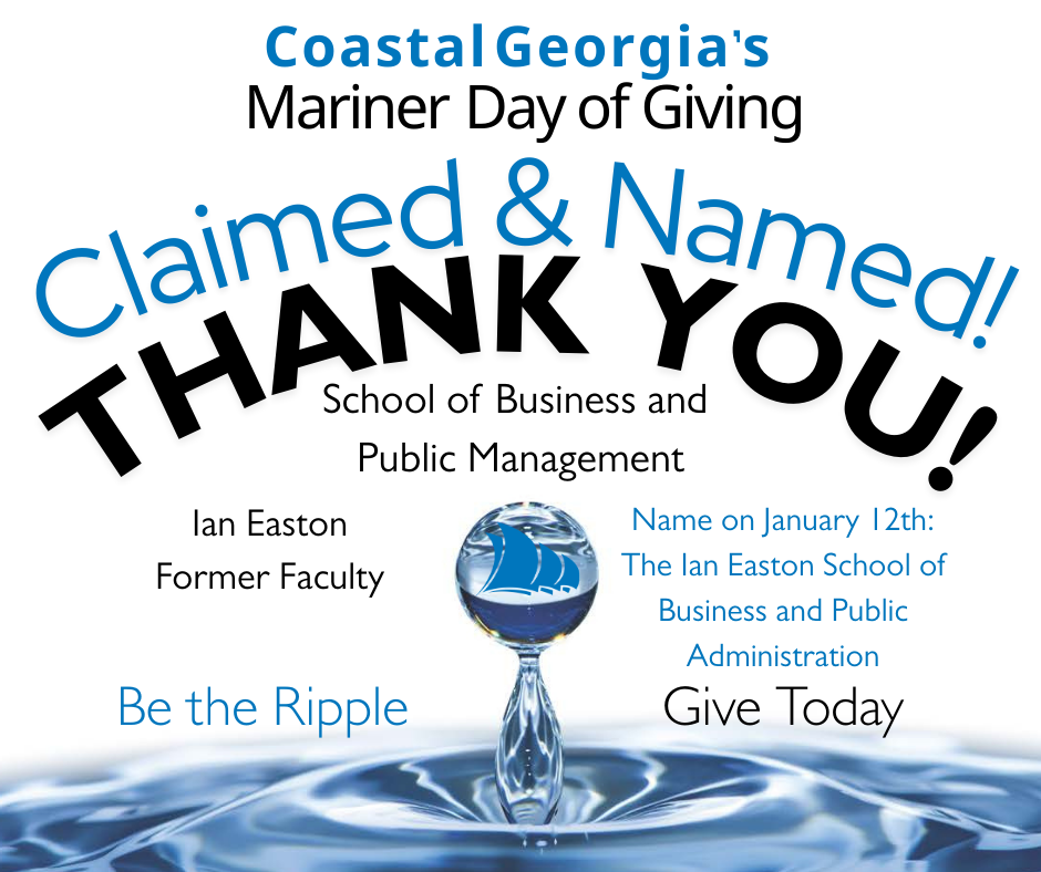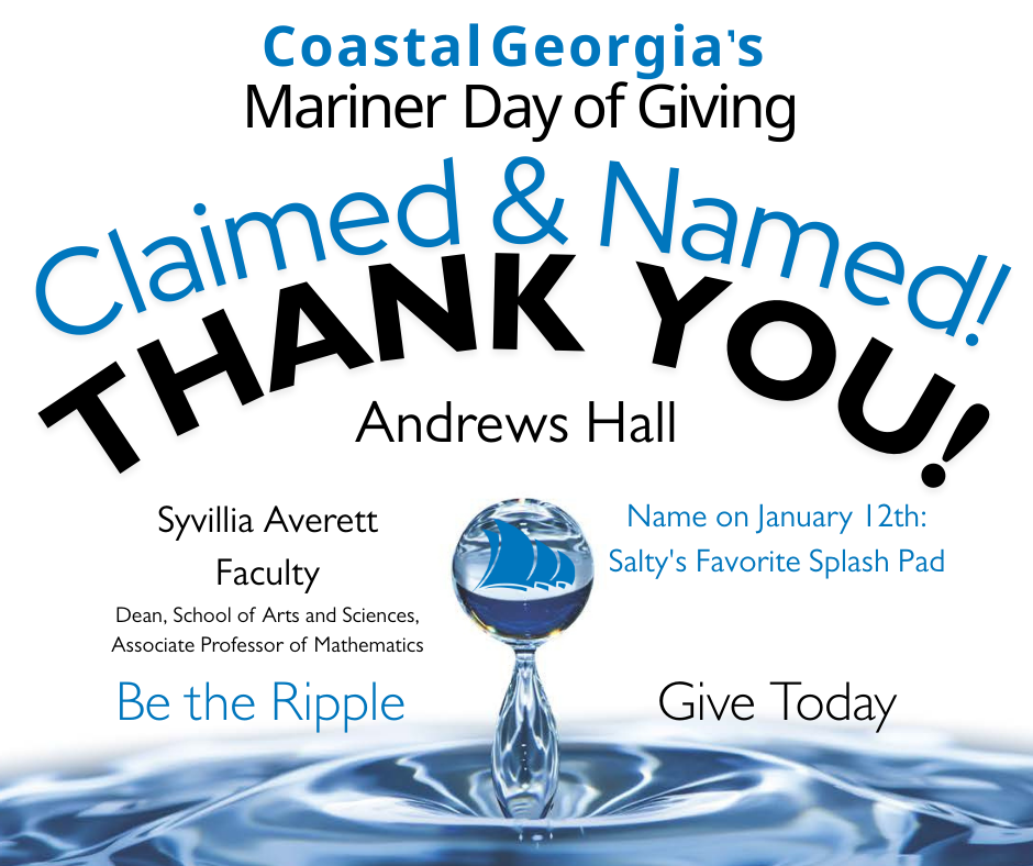 This December 2 – College of Coastal Georgia’s Mariner Day of Giving – and every day leading up to it, we invite you to take part. Make a gift. Volunteer. Share a moment of kindness, because when you do, you’re not just helping a student – you’re starting a ripple that never stops moving. Give today, and be the reason a student’s journey continues to grow and thrive.