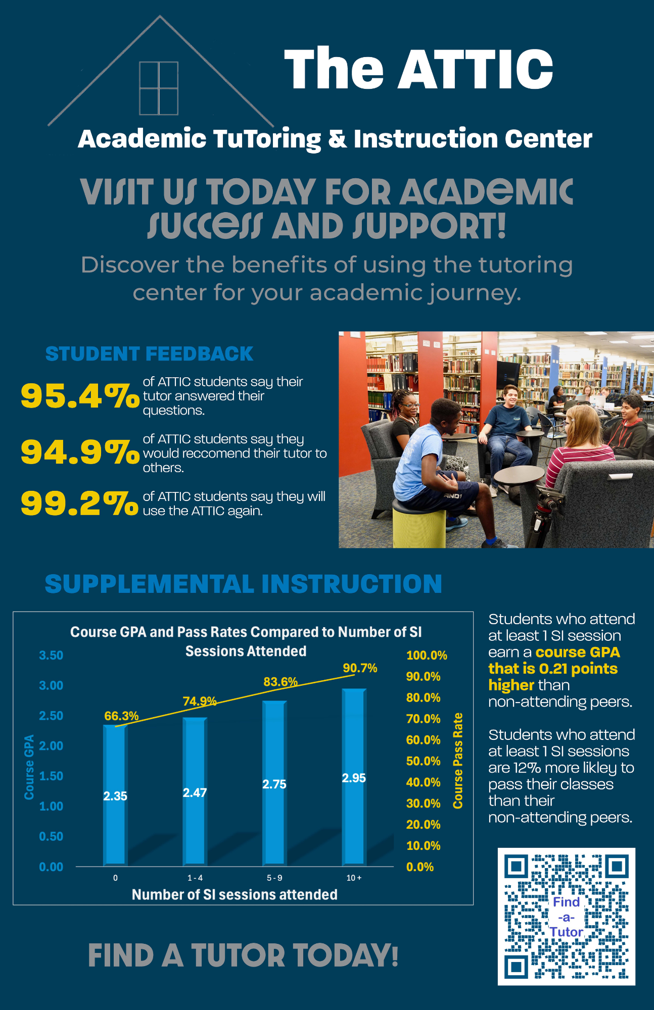 The ATTIC is certified by the College Reading and Learning Association. The CRLA certification process sets an internationally-accepted standard of skills and training for tutors. The ATTIC has held a Level 3-Master Tutor Certification since 2006. In an effort to help students evaluate their academic strengths and weaknesses and succeed in college, the ATTIC provides the following FREE academic services.