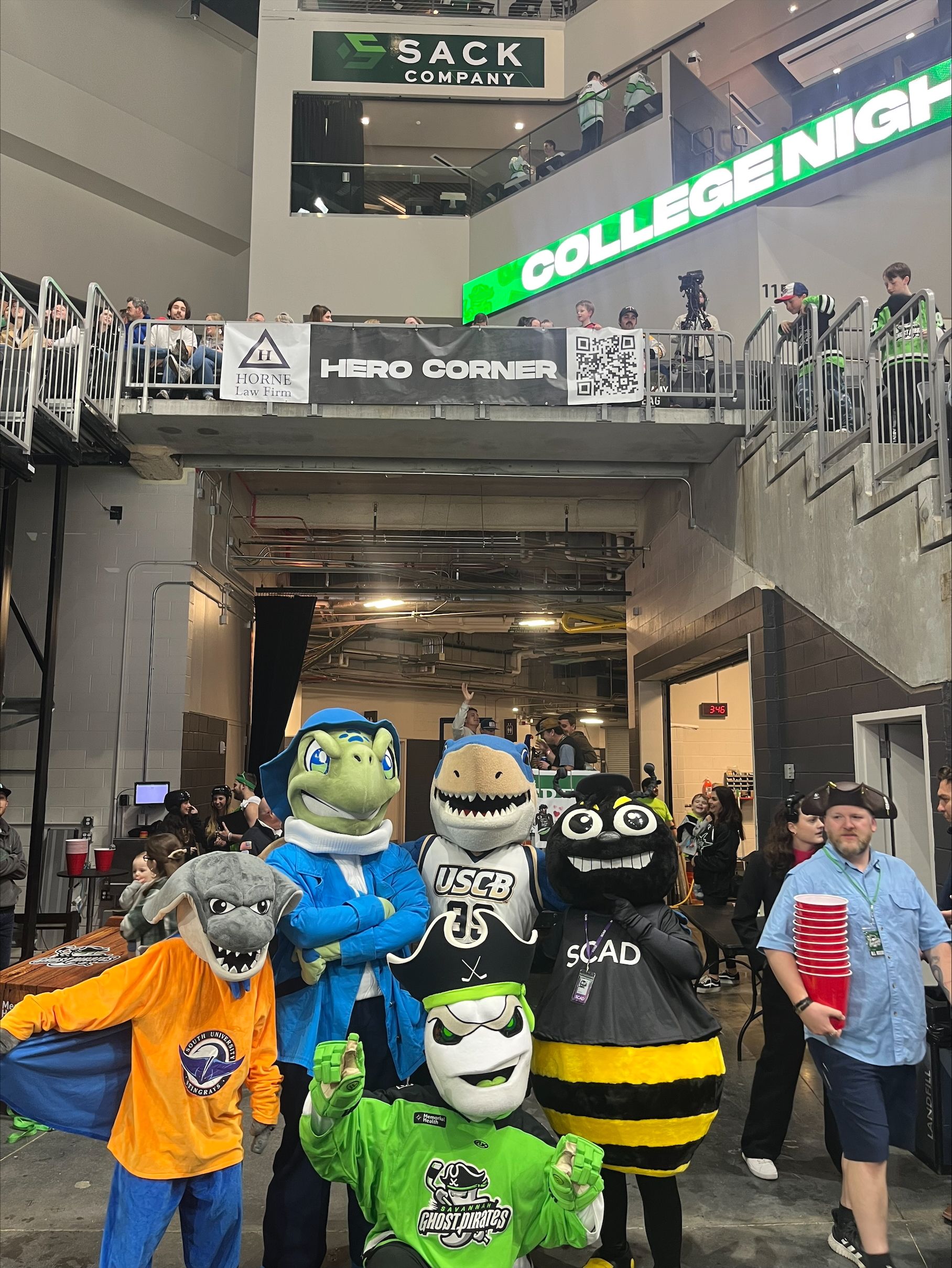 The Savannah Ghost Pirates hosted College Night, with Coastal Georgia proudly joining three other institutions. Mariners showed their school spirit by donning Coastal blue and cheering on the Ghost Pirates in full force. Salty even joined the fun, skating on the ice and teaming up with students from other colleges and universities to support the Savannah Ghost Pirates in style. In appreciation, we would like to thank Maddie Tallent, Savannah Ghost Pirates Coordinator, for her diligence in arranging the event, as well as Athletics and Facilities for transportation scheduling. Thank you, Mariner Nation, for making it a great experience!
