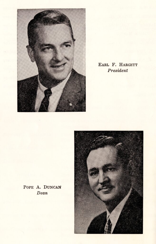 Just a few months later Earl F. Hargett was named as the institution’s first president and Pope A. Duncan was named as the first dean on December 11, 1963, by the Board of Regents.