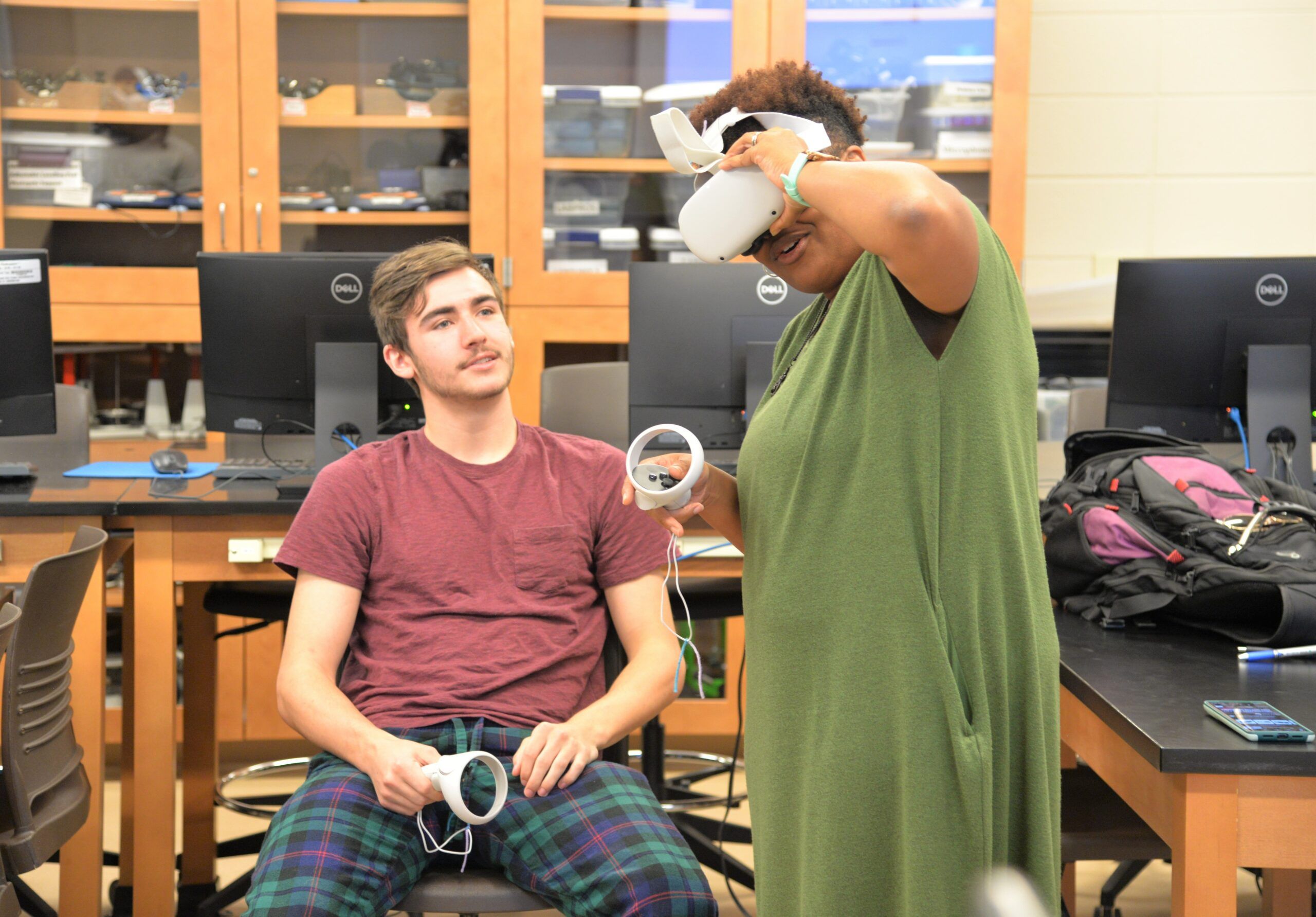 Assistant Professor of Physics Dr. Patrice Edwards isn’t a novice when it comes to virtual reality. She’s had her own virtual reality headset for some time, but now she, along with four other faculty are learning how to bring virtual reality into their classrooms with the help of XR Education and Innovations Labs (XREIL). XREIL is a cutting-edge development group at the College that creates engaging and immersive educational experiences. This semester, the team has been training faculty on virtual reality to enhance what they’re doing in the classroom.