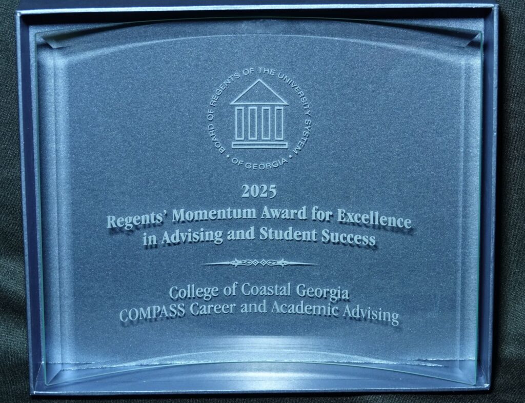 The College of Coastal Georgia’s COMPASS Career and Academic Advising office earned the 2025 Regents’ Momentum Award for Excellence in Advising and Student Success from the University System of Georgia. This award honors institutional advising that creates trajectory toward student success and completion.