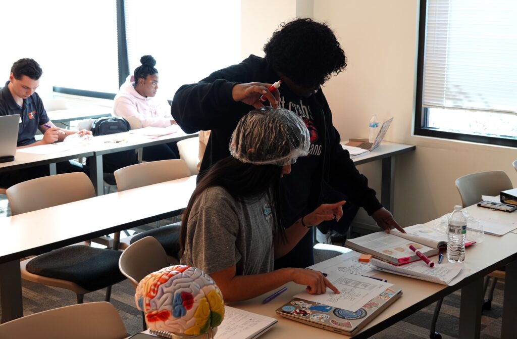 “It’s called embodiment cognition. The idea is that by using their hands, eyes, and drawing on each other’s head, they will be able to learn the four lobes of the brain and its different functions,” Ramos Nuñez said.