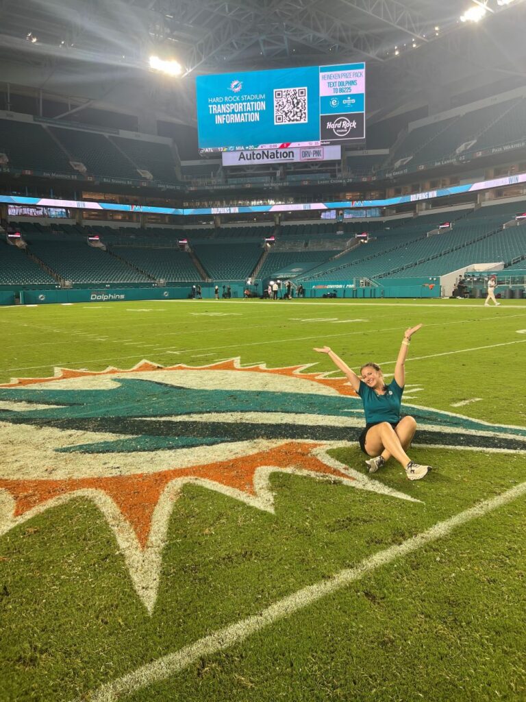 “They basically took out Taylor Swift’s stage yesterday, and tore up the flooring. Now they are putting fresh sod on the field because, this weekend, we have the Florida State vs. Miami game, then a Dolphins game at 1 p.m. Essentially, you have to love what you do if you work in sports,” she said. “The hours are very hard, the pay is difficult, but when you love it so much, you get to see so many great things. I think working at Hard Rock Stadium is amazing because of everything we do.”