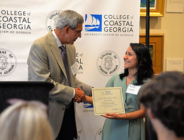 Famed American writer William Arthur Ward once said, “Opportunities are like sunrises. If you wait too long, you miss them.” College of Coastal Georgia junior Monica Linares has certainly seized every opportunity in her quest to earn her degree. She has pursued resources and guidance available through the College and experienced the benefits of doing so. Her mentality of “just go for it” has opened doors that in turn have opened other doors.