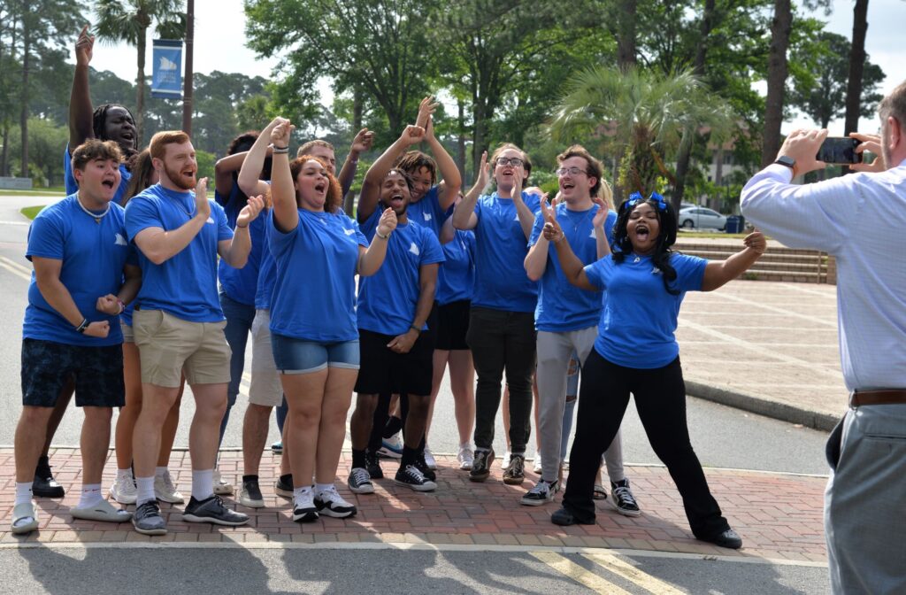 The summer 2024 orientation leaders getting excited to welcome new Mariners to the College.